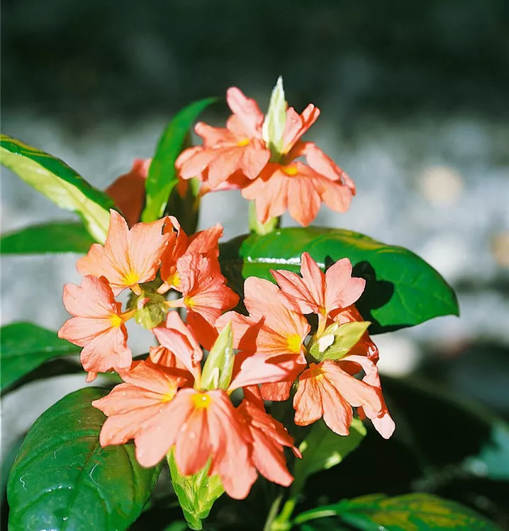 Die orangefarbenen, tellerförmigen Blüten der Crossandra erscheinen in Ähren von April bis Oktober.