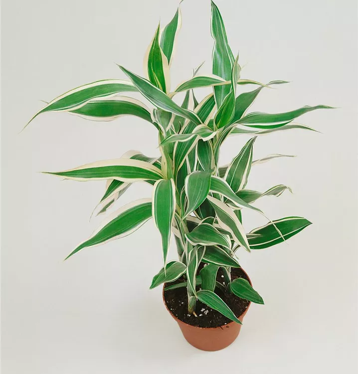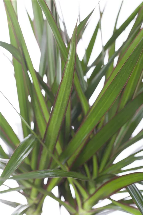 Hoher Blattschmuckwert. Die immergrünen Blätter des Drachenbaums sind dunkelgrün, lineal und weisen einen dunkelroten Rand auf.