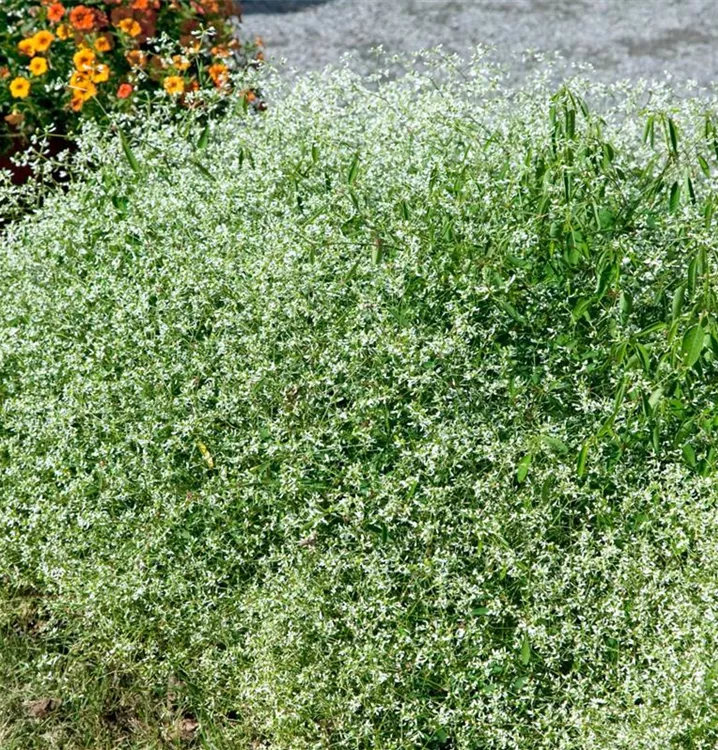 Euphorbia hypericifolia 'Diamond Frost'(s) bildet während der gesamten Saison zahlreiche weiße Blüten.