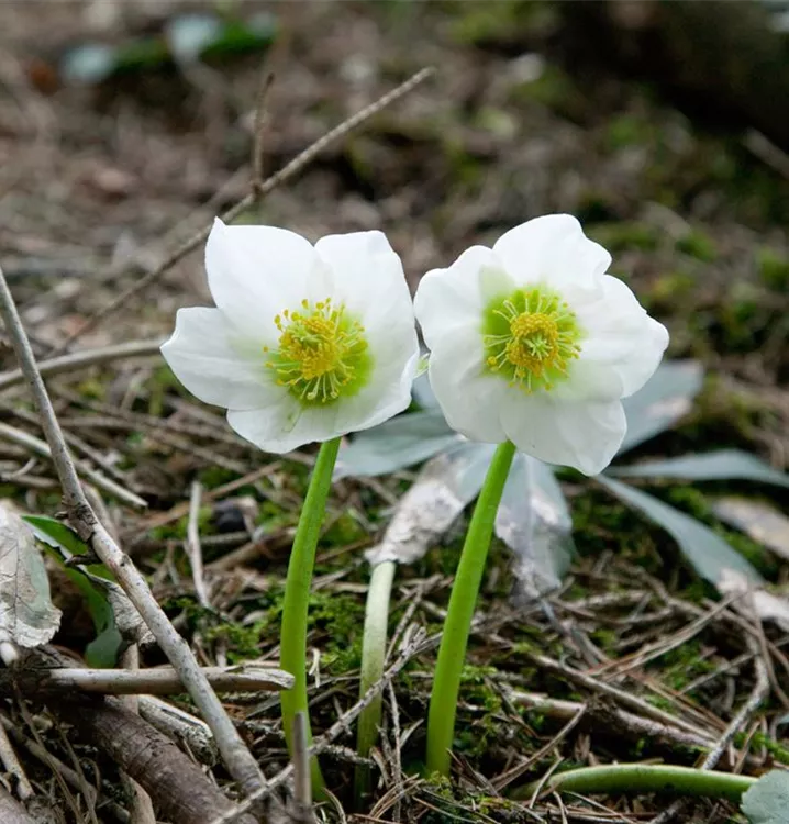Die Christrose (Helleborus niger) ist eine aufrechte wintergrüne Staude, die von Dezember bis März weiße, schalenförmige Blüten bildet. An einem halbschattigen bis schattigen Standort mit kalkhaltigem, lehmigem Boden erreicht sie gewöhnlich eine Höhe von ca. 20 cm und wird ca. 30 cm breit. Die Christrose ist gut frostverträglich.