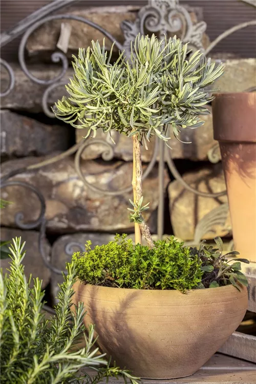 Der Echte Lavendel, Stamm (Lavandula angustifolia) ist eine immergrüne Staude, die von Juni bis Juli violette Blüten mit einem angenehmen Duft bildet. Der Echte Lavendel, Stamm ist gut frostverträglich.