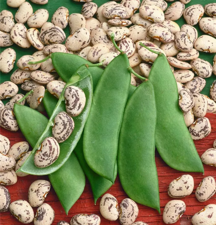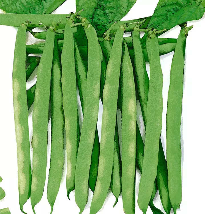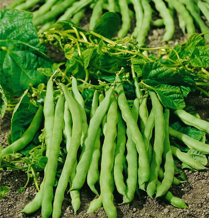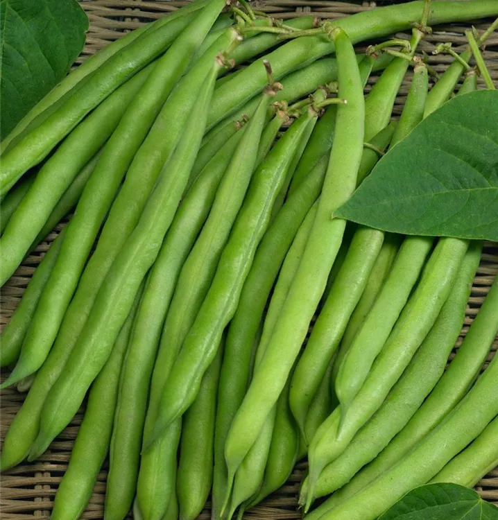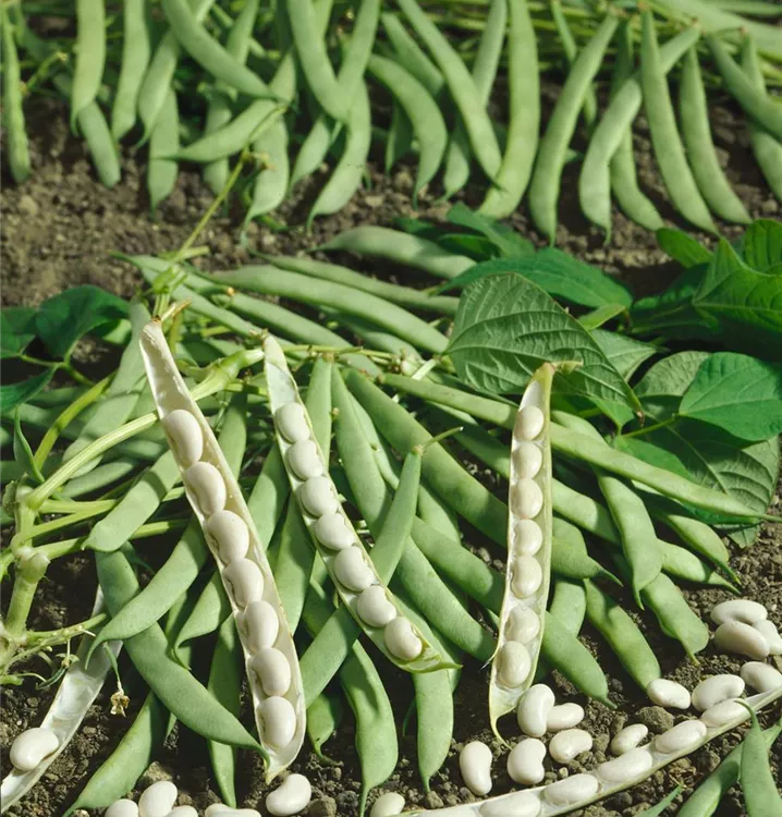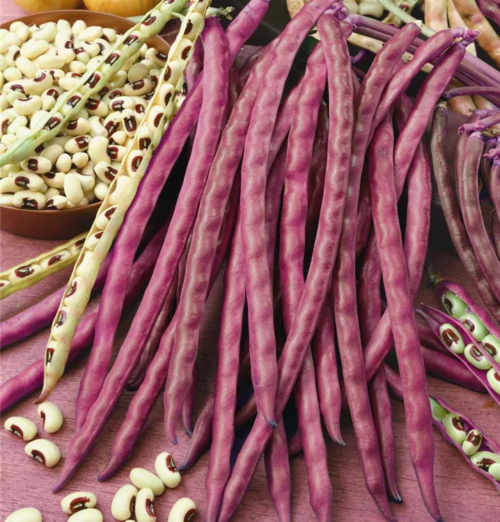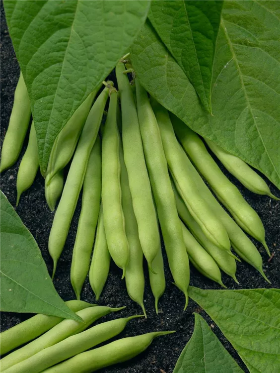 Die Hülsenfrüchte haben einen aromatischen Geschmack. Reifezeit ab Juli. Die Hülsenfrüchte sind länglich.