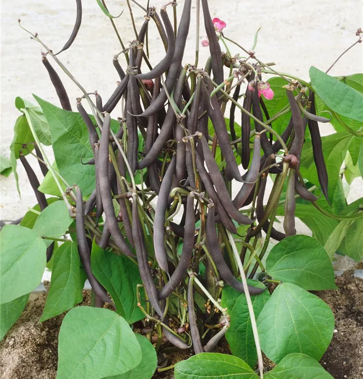 Die Buschbohne (Phaseolus vulgaris) bildet Hülsenfrüchte, die aromatisch schmecken und bereits ab Juli geerntet werden können. Für das optimale Wachstum der Buschbohne werden ein sonniger Standort und durchlässiger, nährstoffreicher Boden benötigt.