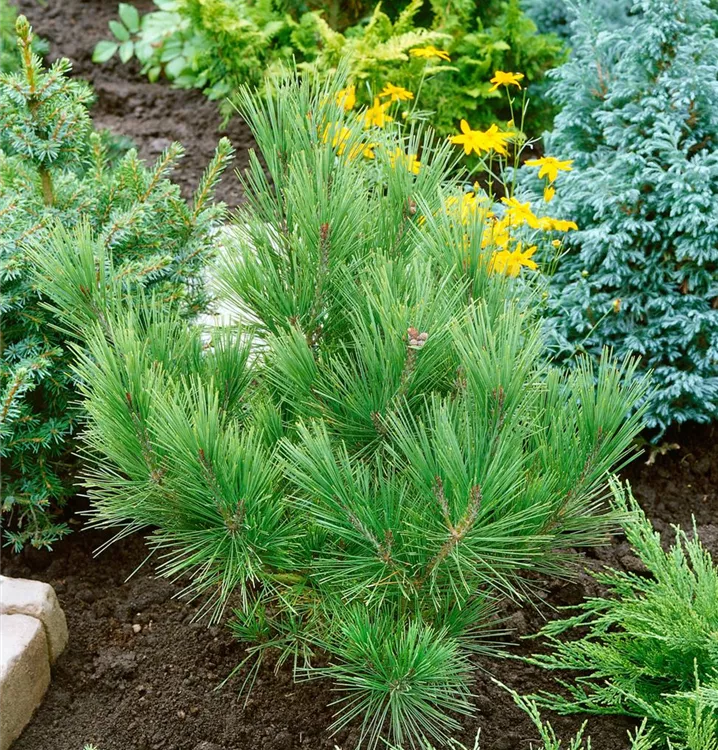 Die Japanische Rotkiefer 'Umbraculifera' (Pinus densiflora) ist ein Gehölz, welches aufrecht, schirmförmig wächst und gewöhnlich eine Höhe von ca. 3 m und eine Breite von ca. 2,5 m erreicht. Dieses Gehölz ist gut frostverträglich.