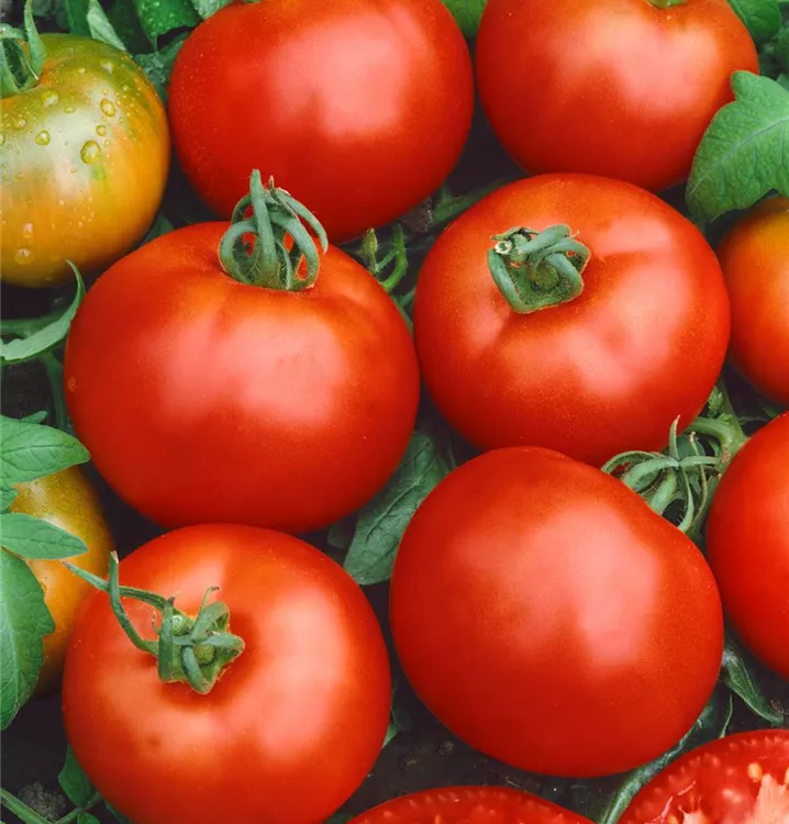 Die Tomate 'Moneymaker' (Solanum lycopersicum) bildet mittelgroße Früchte, die aromatisch schmecken und bereits ab Juli geerntet werden können. Für das optimale Wachstum der Tomate 'Moneymaker' werden ein sonniger Standort und durchlässiger, nährstoffreicher Boden benötigt.