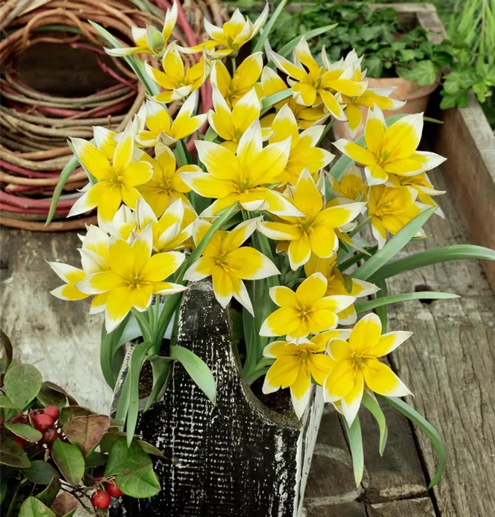Die Späte Tulpe (Tulipa tarda) ist eine pflegeleichte Pflanze, die hellgelb blüht. Die Blüten verströmen einen angenehmen Duft und erscheinen von April bis Mai. Bevorzugt wird ein sonniger Standort.