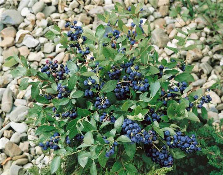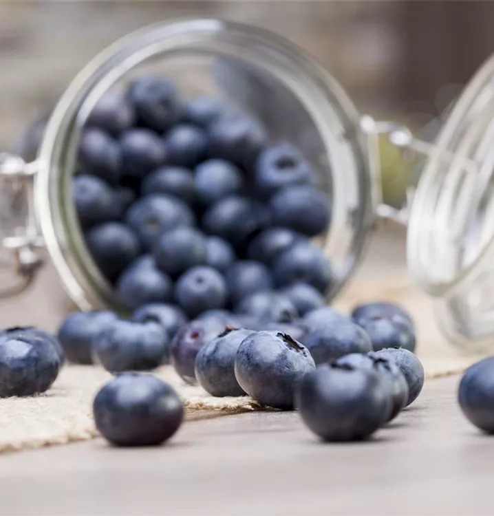 Die Blaubeere (Vaccinium myrtillus) bildet dunkelblaue Beeren. Diese sind süß-säuerlich, fruchtig im Geschmack. Für eine ertragreiche Ernte ab August schaffen humoser, lockerer, sandiger, saurer Boden und ein sonniger bis halbschattiger Standort optimale Bedingungen. Auch ihre grün-roten Blüten sind eine schöne Erscheinung.